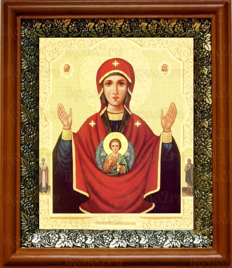 Абалацкая икона Божьей Матери в киоте с басмой Виноградная Лоза (UV-печать)(30008)