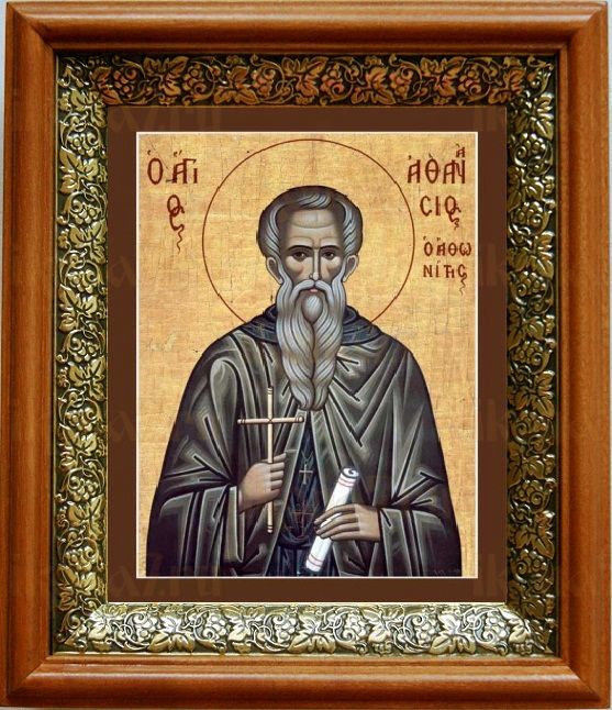 Икона Афанасий Афонский в киоте с басмой Виноградная Лоза (UV-печать)(33030)