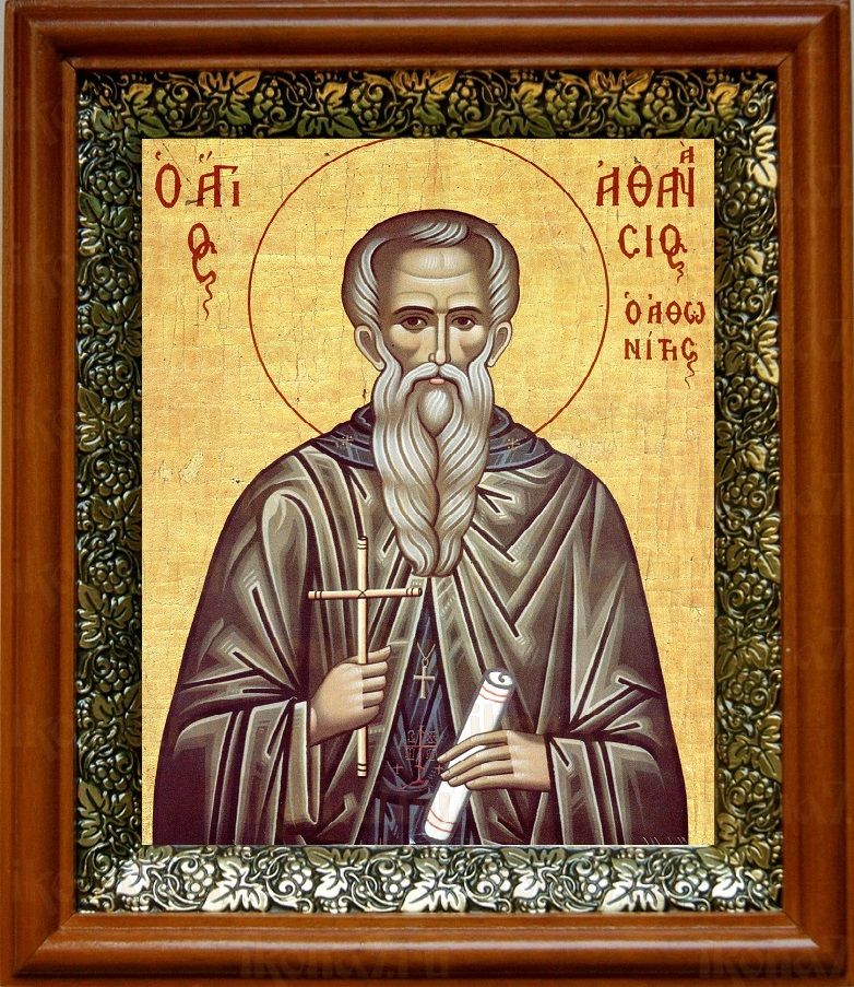 Икона Афанасий Афонский в киоте с басмой Виноградная Лоза (UV-печать)(30126)