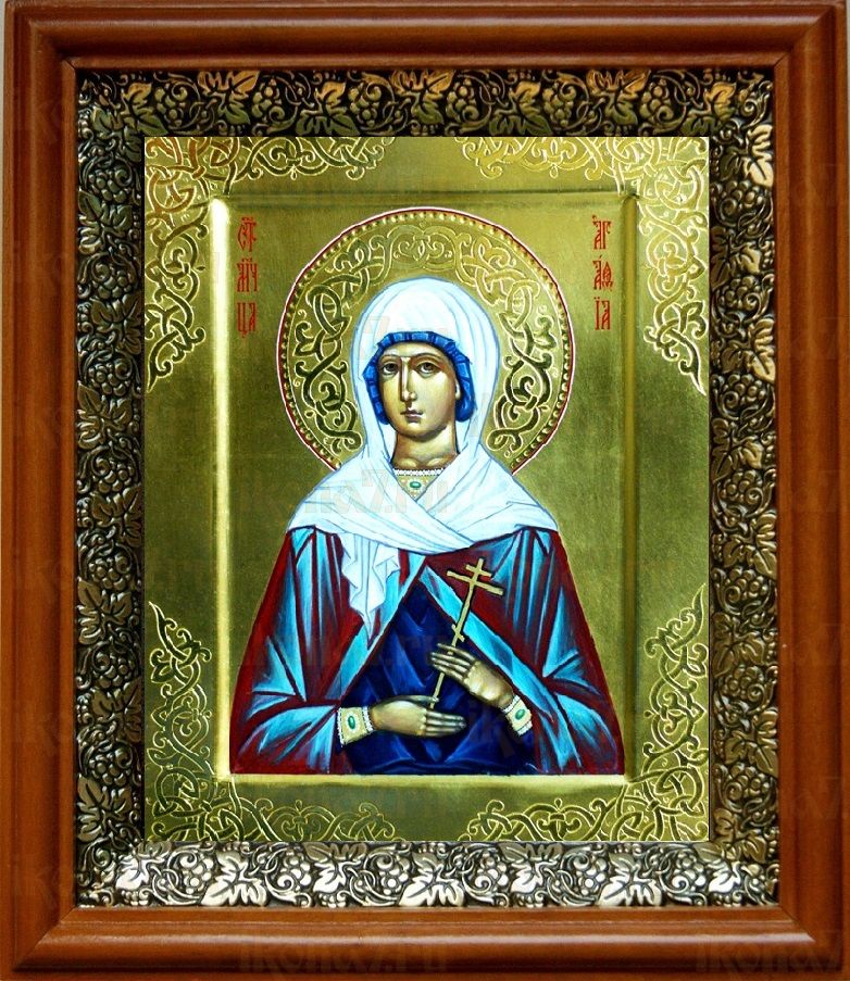 Икона Агафия Никомидийская в киоте с басмой Виноградная Лоза (UV-печать)(30021)