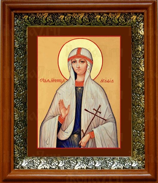 Икона Агафия Панормская в киоте с басмой Виноградная Лоза (UV-печать)(33002)