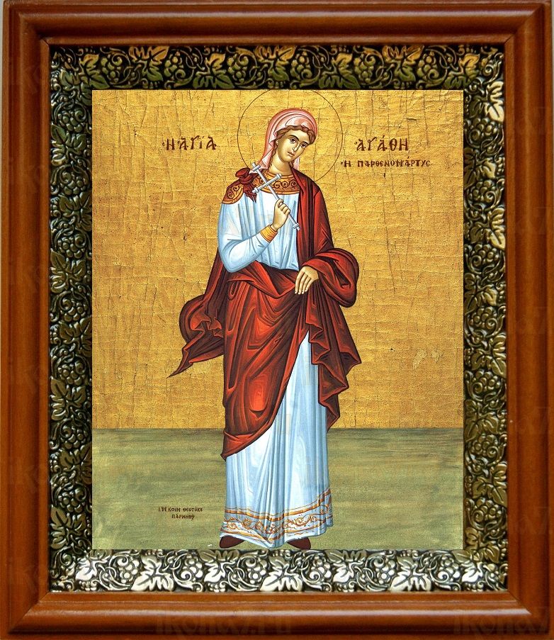 Икона Агафия Панормская в киоте с басмой Виноградная Лоза (UV-печать)(30022)