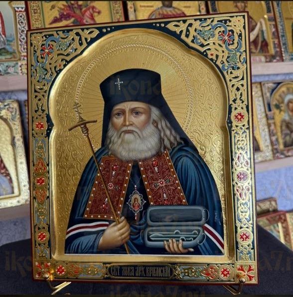 Лука Крымский 27х31 см (рукописная икона с холодными эмалями, сусальным золотом и чеканкой)