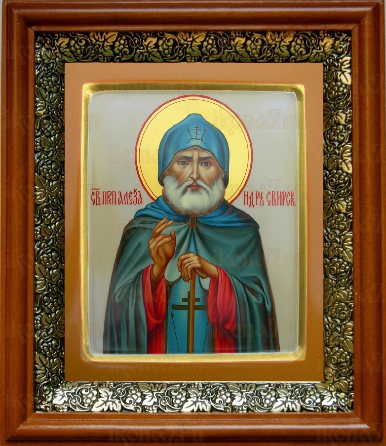 Икона Александр Свирский в киоте с басмой Виноградная Лоза (UV-печать)(30036)