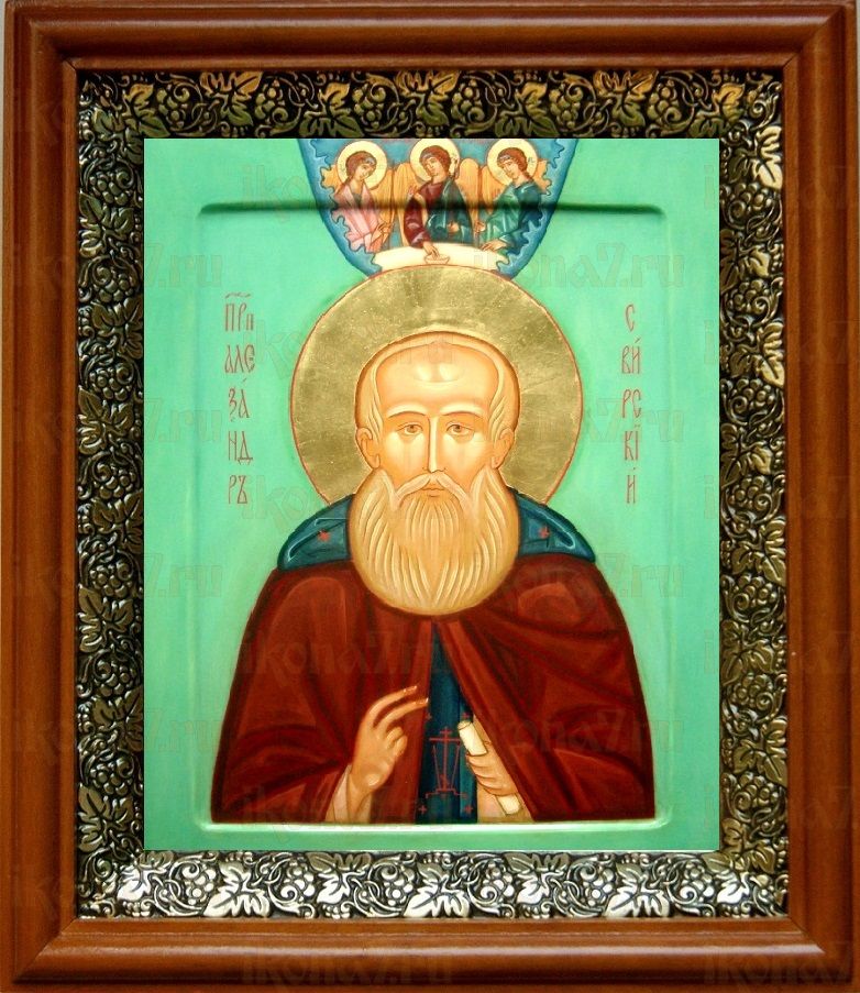 Икона Александр Свирский в киоте с басмой Виноградная Лоза (UV-печать)(30037)