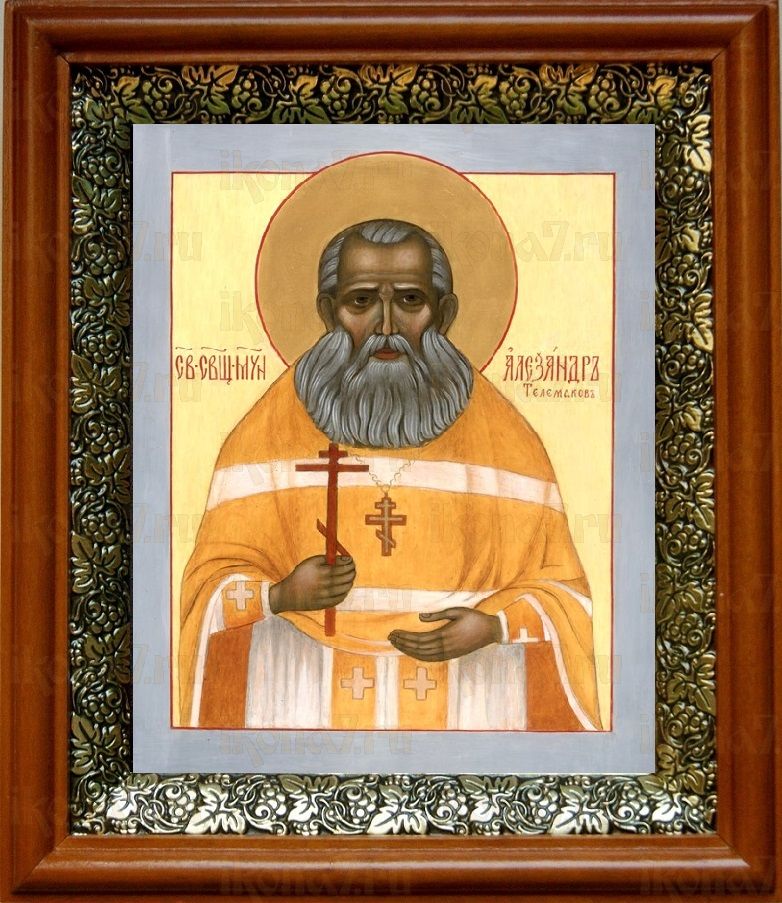 Икона Александр Телемаков в киоте с басмой Виноградная Лоза (UV-печать)(30039)