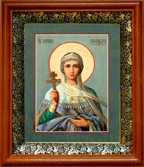 Икона Александра Понтийская в киоте с басмой Виноградная Лоза (UV-печать)(33007)