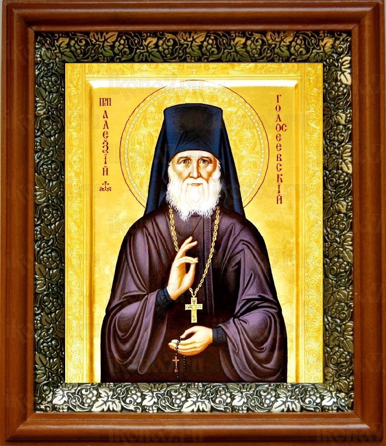 Икона Алексий Голосеевский в киоте с басмой Виноградная Лоза (UV-печать)(30043)