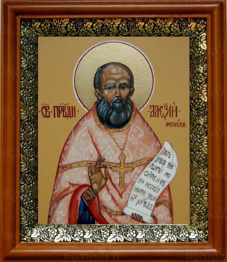 Икона Алексий Мечев в киоте с басмой Виноградная Лоза (UV-печать)(30045)