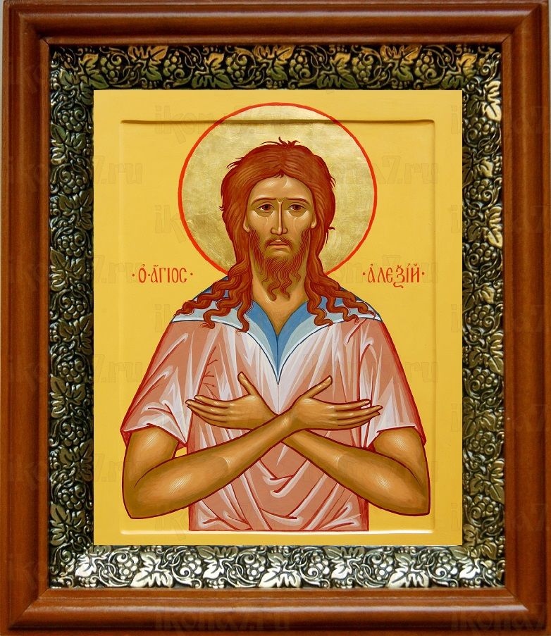 Икона Алексий, человек Божий в киоте с басмой Виноградная Лоза (UV-печать)(30049)