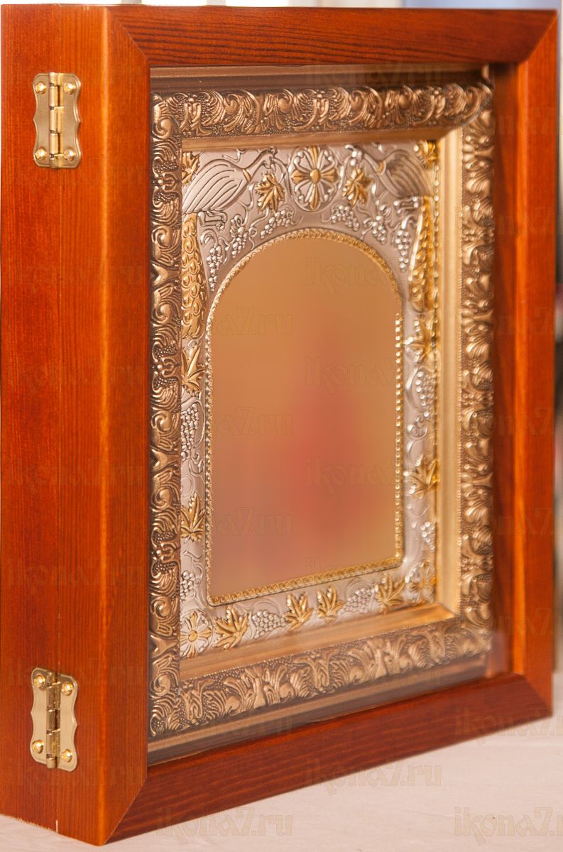 Киот со стеклом, выполнен из дерева.