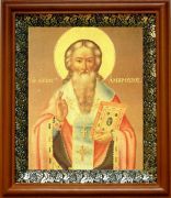 Икона Амвросий Медиоланский в киоте с басмой Виноградная Лоза (UV-печать)(30051)