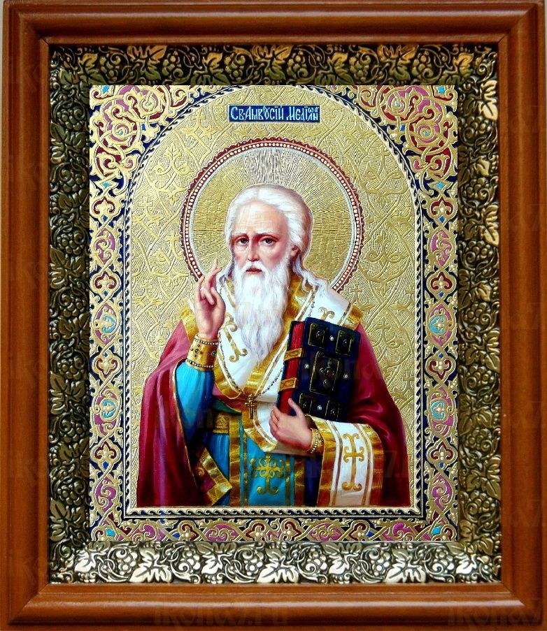 Икона Амвросий Медиоланский в киоте с басмой Виноградная Лоза (UV-печать)(30052)
