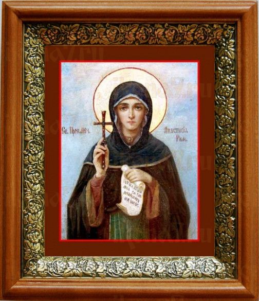Икона Анастасия Римляныня в киоте с басмой Виноградная Лоза (UV-печать)(33012)
