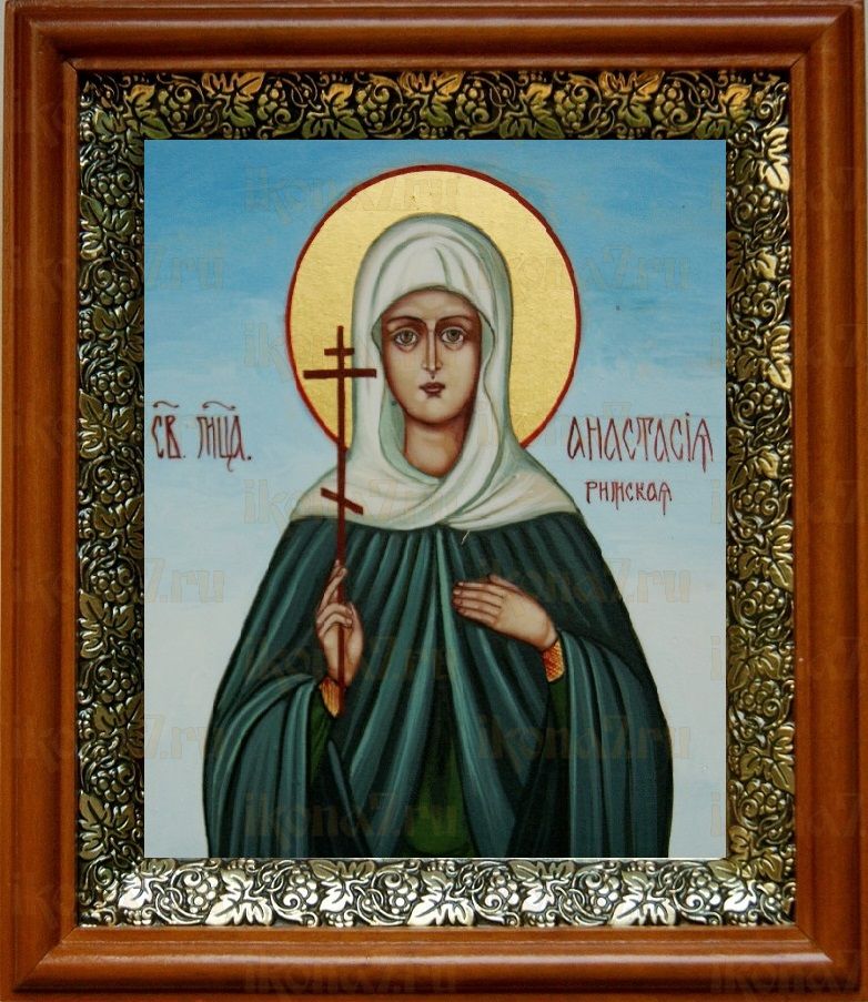Икона Анастасия Римская в киоте с басмой Виноградная Лоза (UV-печать)(30058)