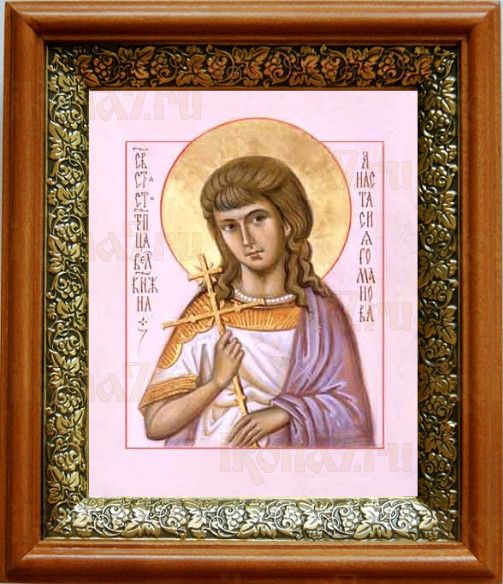 Икона Анастасия Романова в киоте с басмой Виноградная Лоза (UV-печать)(33013)