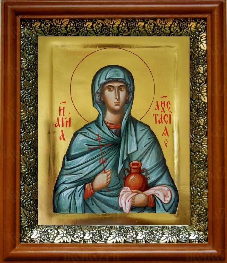 Икона Анастасия Узорешительница в киоте с басмой Виноградная Лоза (UV-печать)(30060)