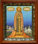 Икона Андрей Боголюбский в киоте с басмой Виноградная Лоза (UV-печать)(30073)