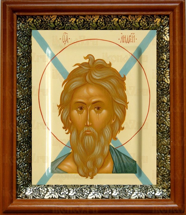 Икона Андрей Первозванный в киоте с басмой Виноградная Лоза (UV-печать)(30075)