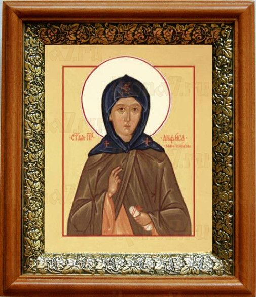 Икона Анфиса Мантинейская в киоте с басмой Виноградная Лоза (UV-печать)(33025)