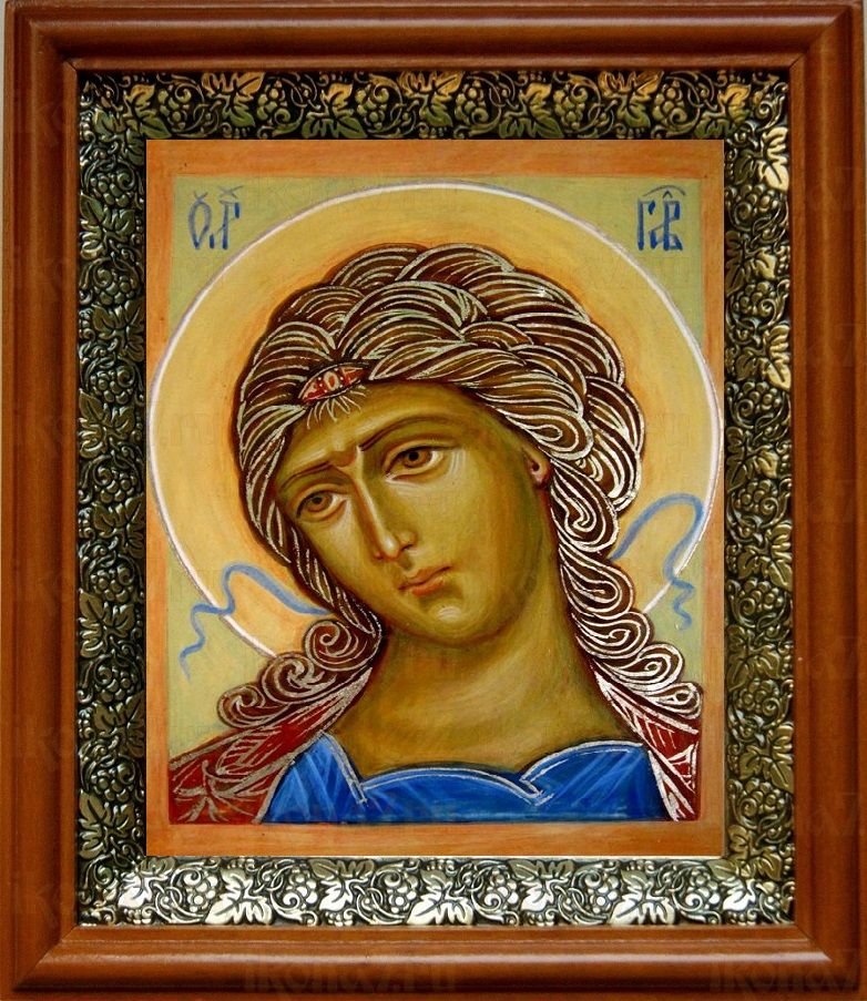 Икона Ангел Златые власы в киоте с басмой Виноградная Лоза (UV-печать)(30069)