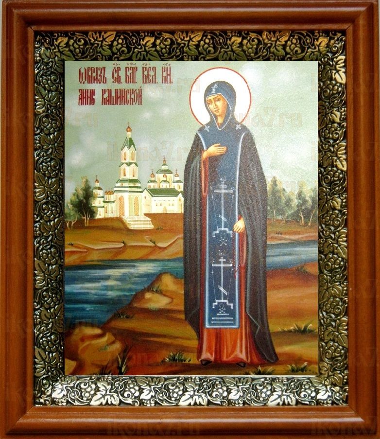 Икона Анна Кашинская в киоте с басмой Виноградная Лоза (UV-печать)(30084)