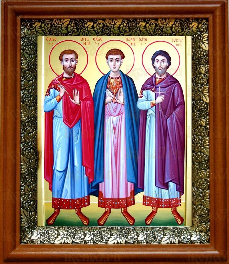 Икона Антоний, Иоанн и Евстафий Виленские в киоте с басмой Виноградная Лоза (UV-печать)(30100)