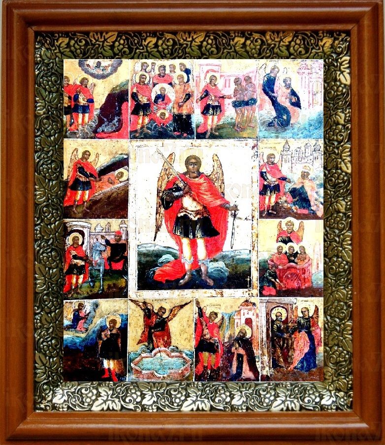 Икона Архангел Михаил с деяниями в киоте с басмой Виноградная Лоза (UV-печать)(30125)