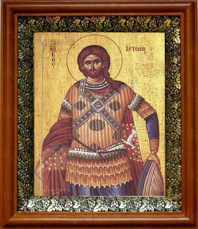 Икона Артемий Антиохийский в киоте с басмой Виноградная Лоза (UV-печать)(30118)