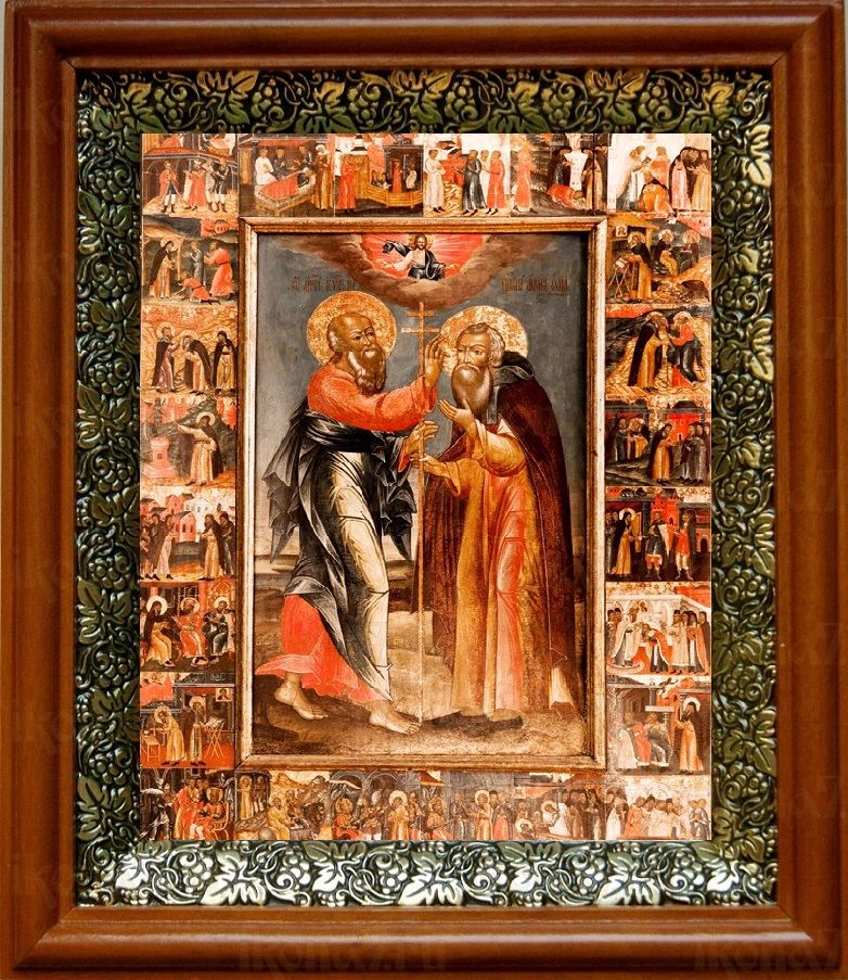 Икона Авраамий Ростовский в киоте с басмой Виноградная Лоза (UV-печать)(30017)