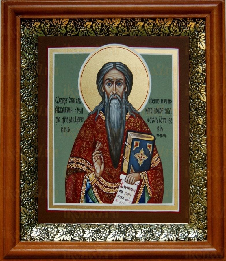 Икона Аввакум протопоп в киоте с басмой Виноградная Лоза (UV-печать)(30010)