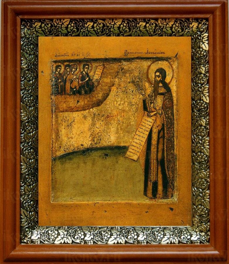 Икона Аввакум протопоп в киоте с басмой Виноградная Лоза (UV-печать)(30009)