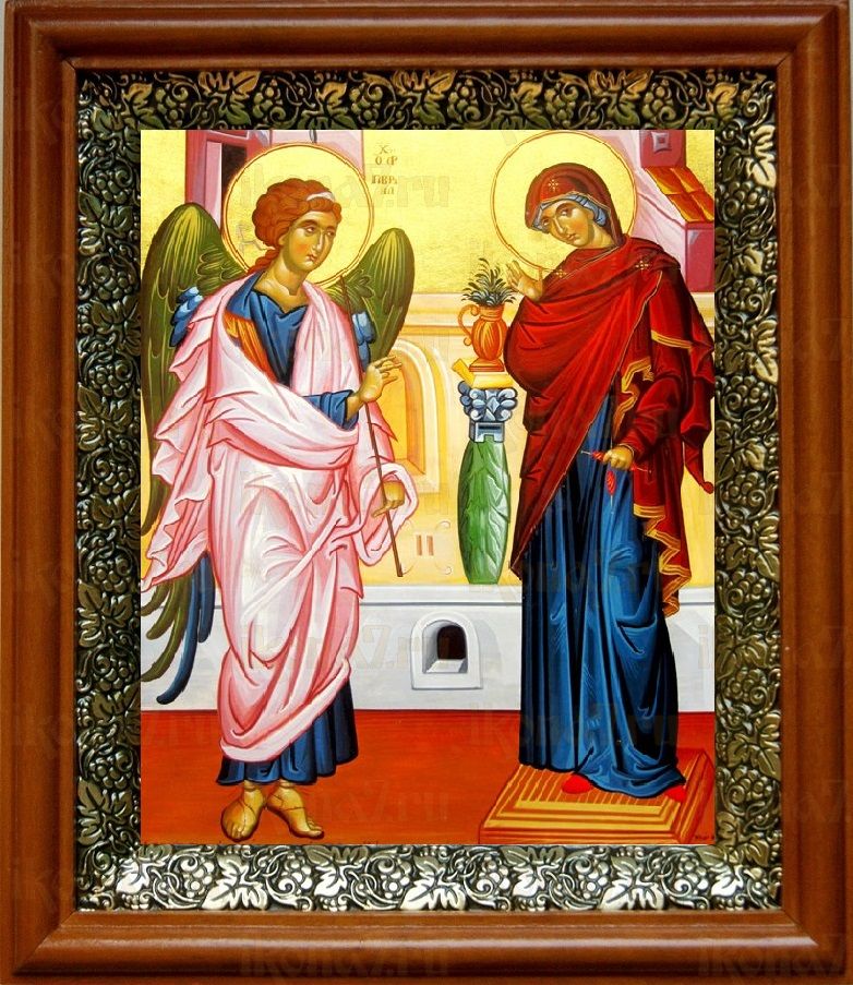Икона Благовещение Пресвятой Богородицы в киоте с басмой Виноградная Лоза (UV-печать)(30137)