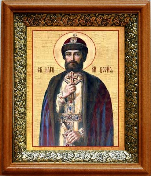 Икона Борис, князь в киоте с басмой Виноградная Лоза (UV-печать)(33034)