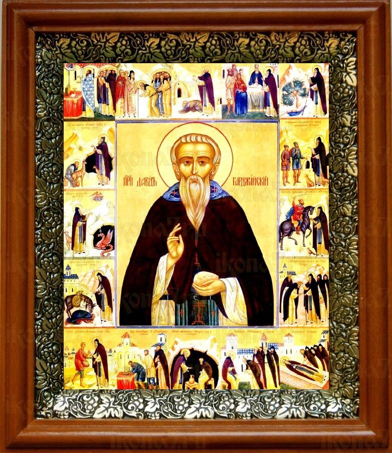 Икона Давид Гареджийский в киоте с басмой Виноградная Лоза (UV-печать)(30281)