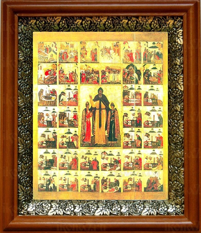 Икона Давид Ярославский в киоте с басмой Виноградная Лоза (UV-печать)(30288)