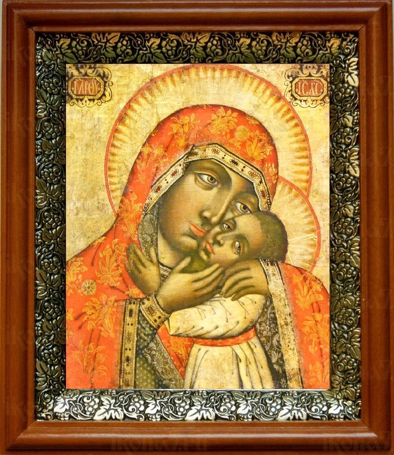 Дегтярёвская икона Божьей Матери в киоте с басмой Виноградная Лоза (UV-печать)(30301)