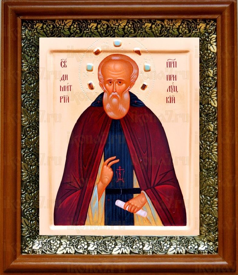 Икона Димитрий Прилуцкий в киоте с басмой Виноградная Лоза (UV-печать)(30310)