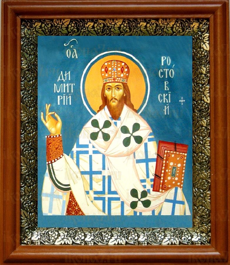 Икона Димитрий Ростовский в киоте с басмой Виноградная Лоза (UV-печать)(30313)