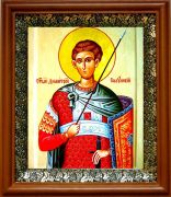 Икона Димитрий Солунский в киоте с басмой Виноградная Лоза (UV-печать)(30315)
