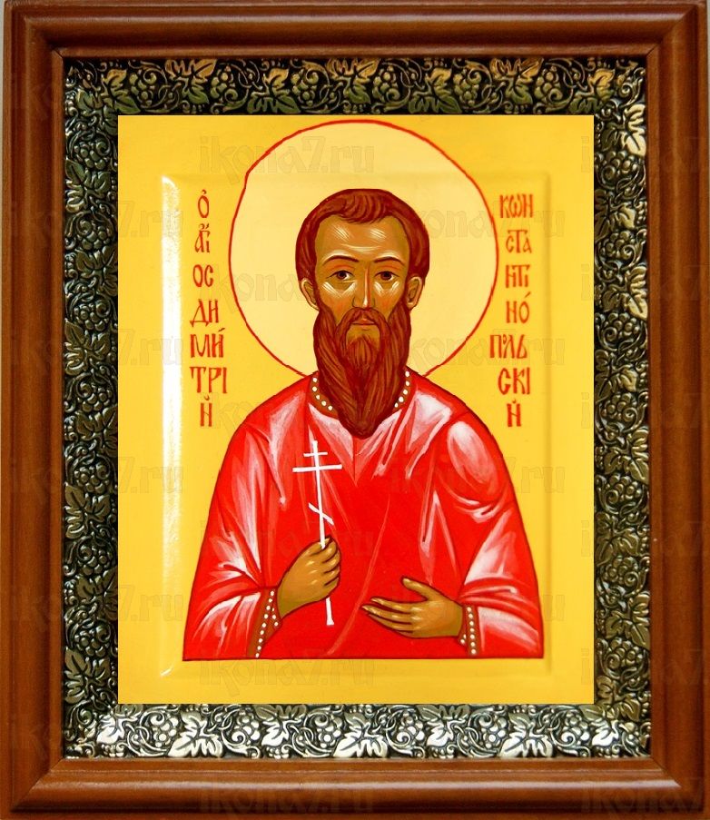 Икона Дмитрий Константинопольский в киоте с басмой Виноградная Лоза (UV-печать)(30328)