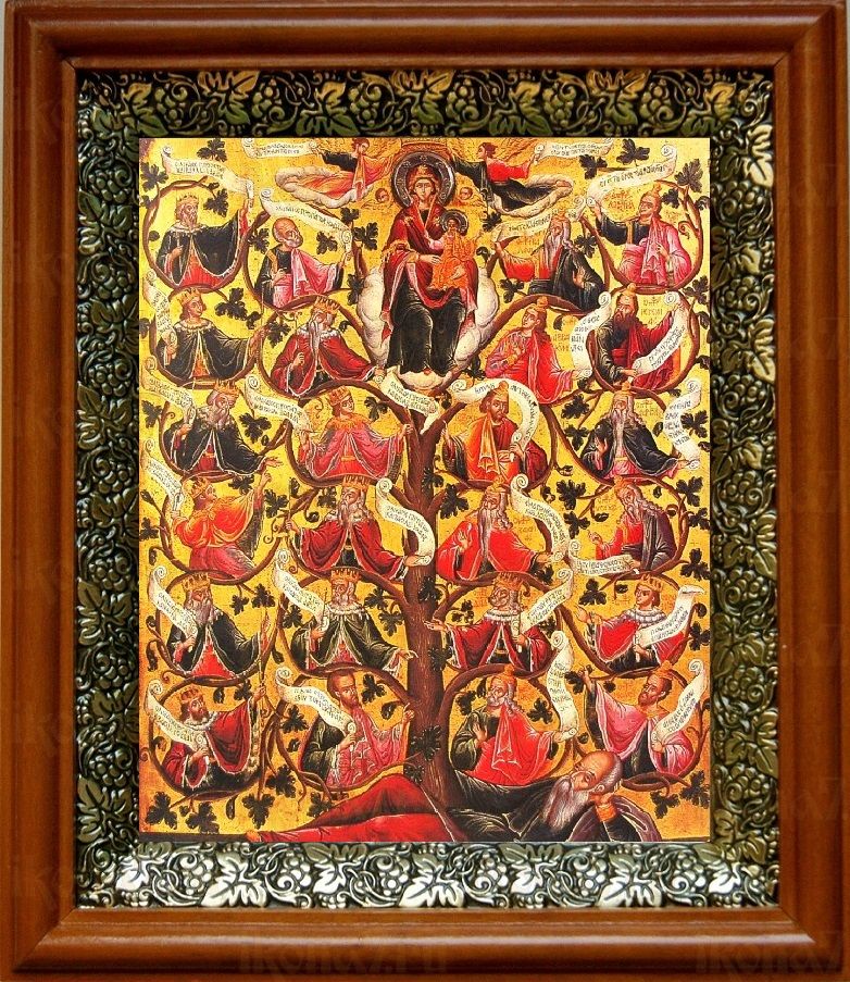 Икона Древо Иессеево в киоте с басмой Виноградная Лоза (UV-печать)(30332)