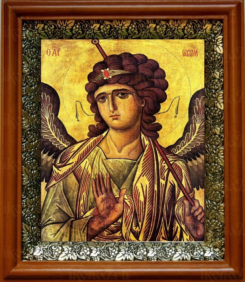 Икона Гавриил Архангел в киоте с басмой Виноградная Лоза (UV-печать)(30232)