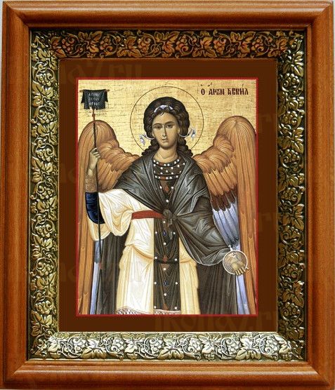 Икона Гавриил Архангел в киоте с басмой Виноградная Лоза (UV-печать)(33055)