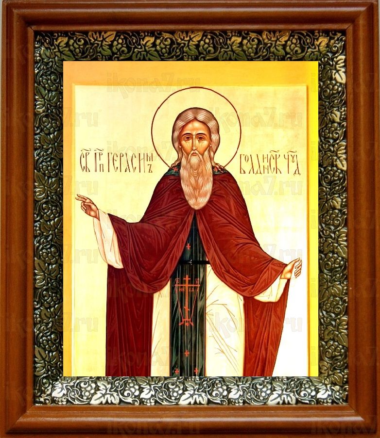 Икона Герасим Болдинский в киоте с басмой Виноградная Лоза (UV-печать)(30249)