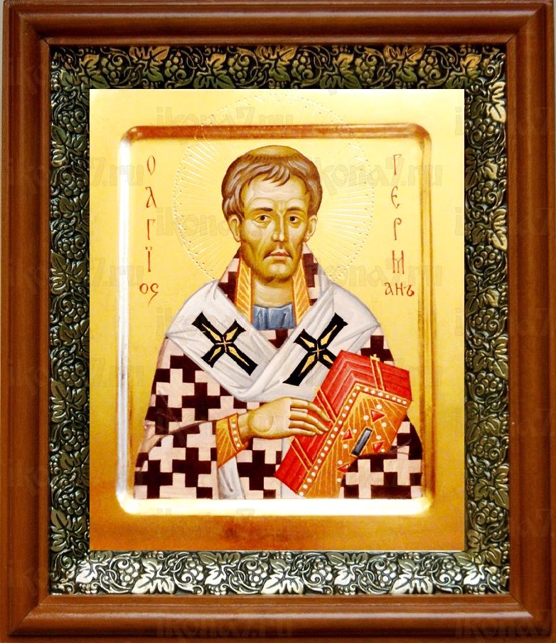 Икона Герман Константинопольский в киоте с басмой Виноградная Лоза (UV-печать)(30257)