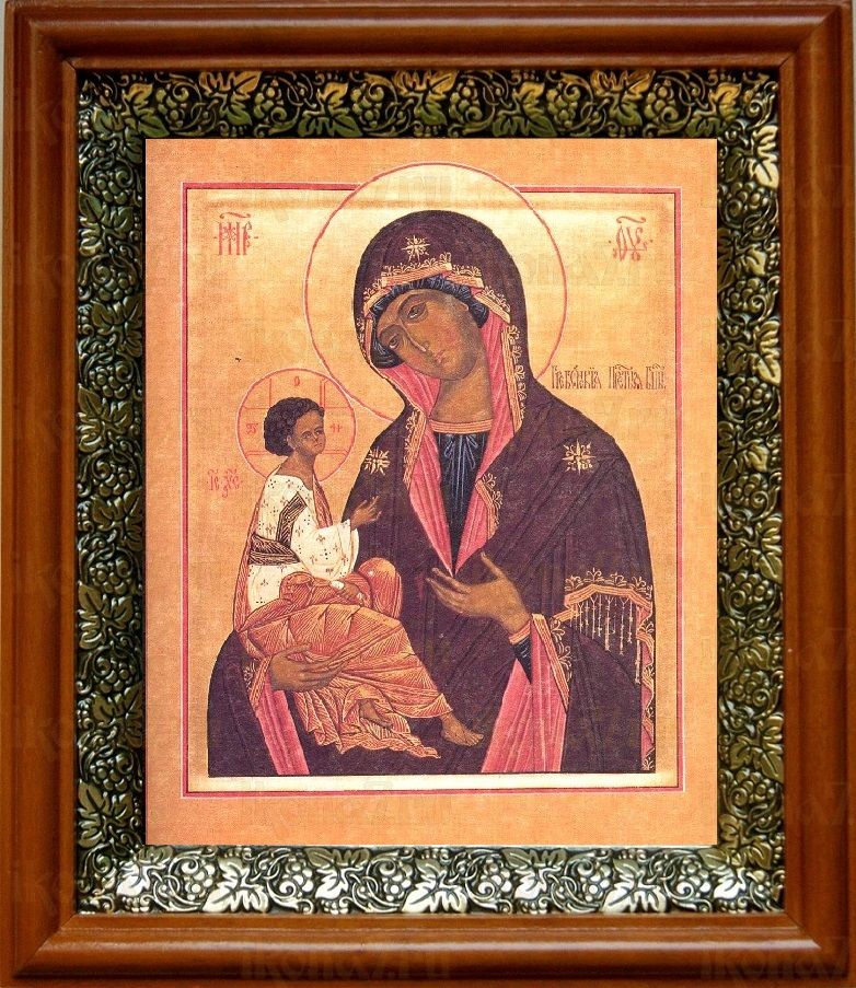Гребневская икона Божьей Матери в киоте с басмой Виноградная Лоза (UV-печать)(30265)