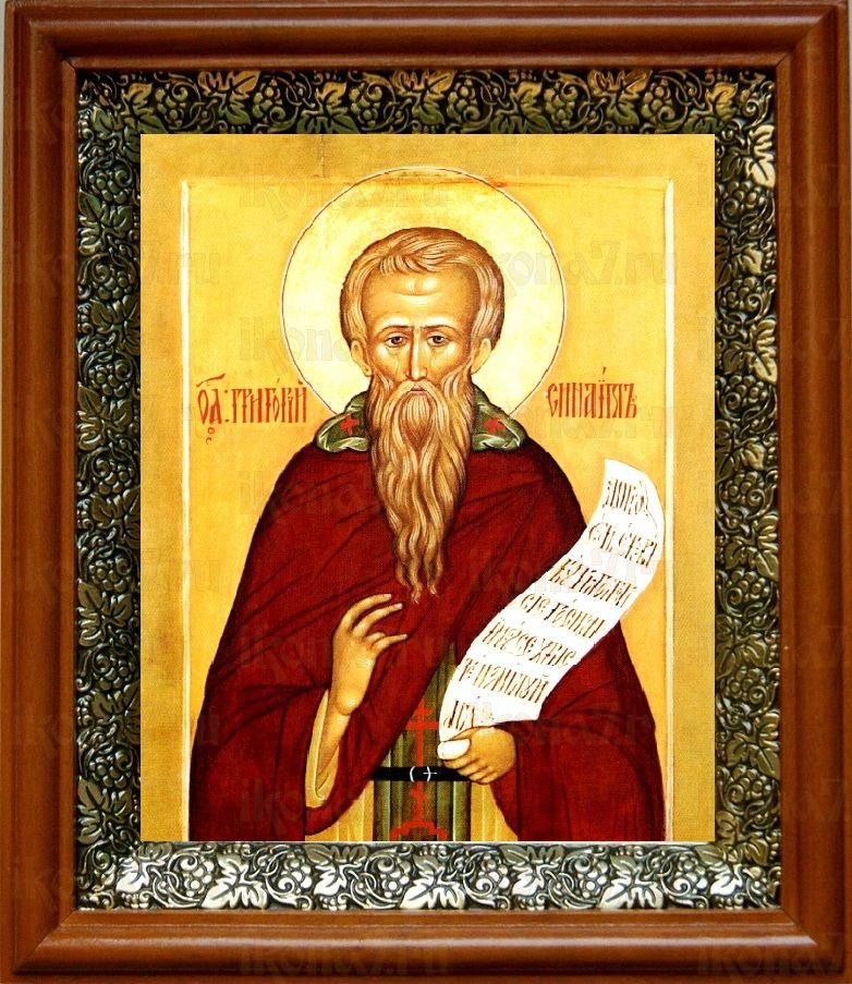 Икона Григорий Синаит в киоте с басмой Виноградная Лоза (UV-печать)(30277)