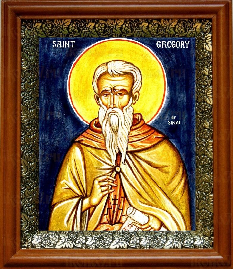 Икона Григорий Синаит в киоте с басмой Виноградная Лоза (UV-печать)(30275)