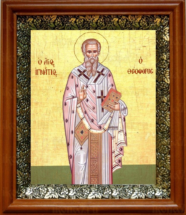 Икона Игнатий Богоносец в киоте с басмой Виноградная Лоза (UV-печать)(30413)